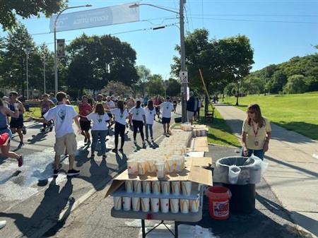 Rotarians again participated Utica’s renowned 15K Road Race on Sunday, July 10, by staffing a water station and providing refreshment-on-the-run for runners.